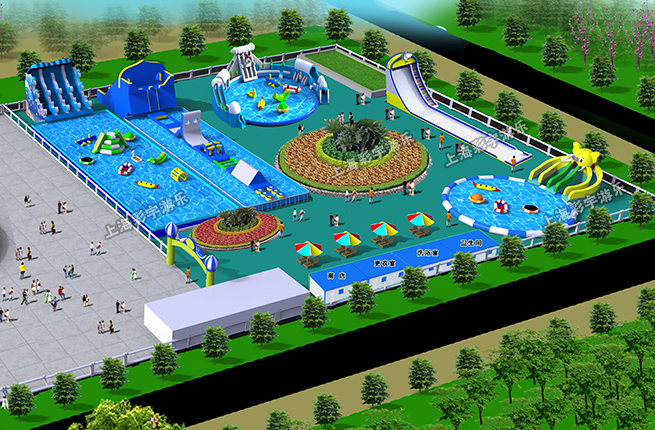 充氣水上樂園以大小、形狀、深度不同的可移動支架水池、充氣水池和各種卡通造型的水上滑梯為構架,以水上滑梯為刺激源,浮具為點綴,結合動漫、文化元素,利用充氣游樂產品形象描敘精確的主題式游水、嬉水樂園。 充氣水上樂園利用充氣產品制作而成的具有一定娛樂性質的主題式游水、嬉水樂園。