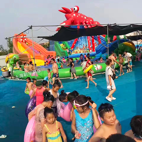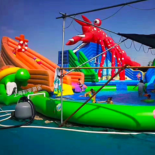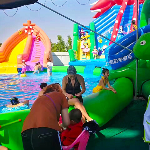滑梯組合戲水,與充氣水池相互完美的結合,不僅造型獨特新穎,而且玩耍過程中樂趣無窮。該產品以可移動支架水池、充氣水池為構架,用充氣游樂設施來形象描敘不同的動漫、文化元素的主題式水上游樂項目,其產品組合中,融合了支架、充氣和文化的特點