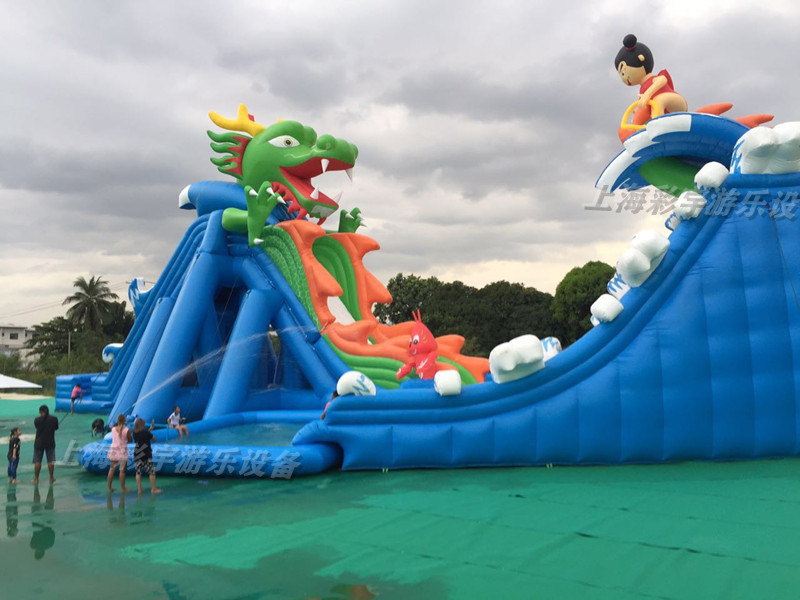 哪吒鬧海浪擺滑梯,游客可以體驗下降、上升的體驗,玩法多種多樣,可以帶皮筏游玩也可以赤身游玩,浪擺滑梯可直接落水。適用于大小水上樂園。
