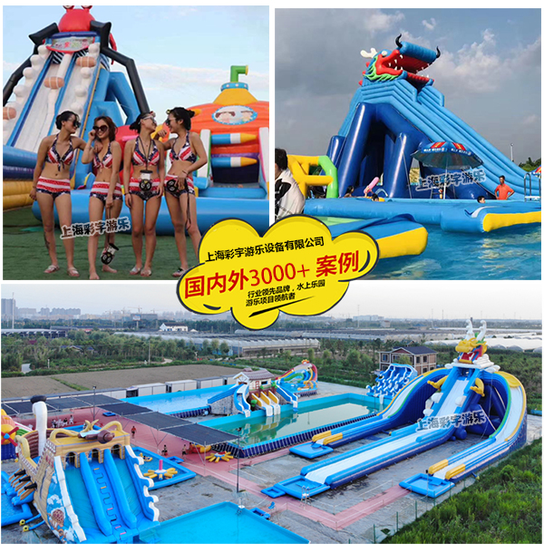 移動水上樂園分別有充氣滑梯與充氣水池相互完美的結合,不僅造型獨特新穎,而且玩耍過程中樂趣無窮。該產品以可移動支架水池、充氣水池為構架,用充氣游樂設施來形象描敘不同的動漫、文化元素的主題式水上游樂項目,其產品組合中,融合了支架、充氣和文化的特點產品特點:1、主題文化表現性:主題文化表現力強,有利于文化宣傳推廣,便于與政府部門宣傳主題結合。2、場地適應牲強:可用于城市廣場、公園、操場、景區、度假村、體育場館、城鄉結合空曠處等,無需基建,設施可移動組合,不長期占用、傷害場地。3、適用性廣:產品龍鯊嬉水池適用范圍大,水深度可調。4、衛生環保性:使用標準自來水,干凈衛生,采用國際先進水循環處理系統,對泳池用水不間歇消毒殺菌處理,整個活動季節中可不換水,節約能源和水資源。5、安全性:使用安全,池壁為充氣型受力或柔性結構,對嬉水人員不會造成溺水事故。6、可移動、便攜性:便于安裝、拆卸,方便保存,產品售前、售中、售后服務好,有專人指導,且可反復、多次使用。7、經濟性:項目投資相對同等規模其他形式的水上樂園對比極其低廉,具有很強的耐用性,性價比高。