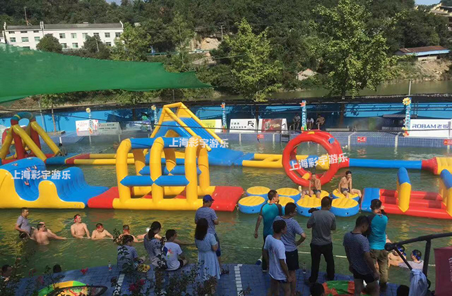 2.可移動性:充氣水上沖關設備對場地的要求相對較低,只需要有一塊平坦空曠的場地就可以滿足,配合其便攜性的特點,使得沖關設備在任何地點都可以進行經營。彌補了目前流行沖關設備地點固定的缺點。