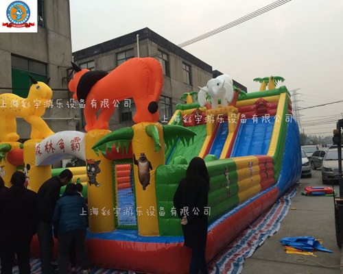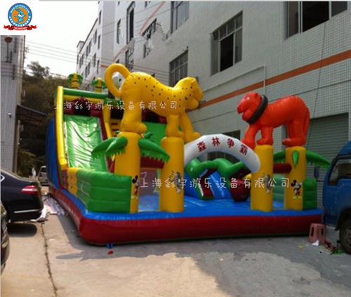 充氣城堡游樂園屬新一代的娛樂設施,根據兒童的特性設計,它內含滑梯、各式各樣的動物造型,有豐富的娛樂項目,深受孩子們的喜愛。它具有安全性、綜合性、可觀賞性、新穎性,色彩鮮明,經久耐用通過科學的立體組合,采用超強的防水布制作而成,這是一種綜合性極強的娛樂樂園。游戲者通過翻、滾、爬、搖、晃、跳、鉆等新奇的活動方式,達到開發智力,鍛煉身體,愉悅身心的目的。本產品因其隨意性和無動力裝置受到買家的歡迎,安全可靠,管理簡單,維修方便。